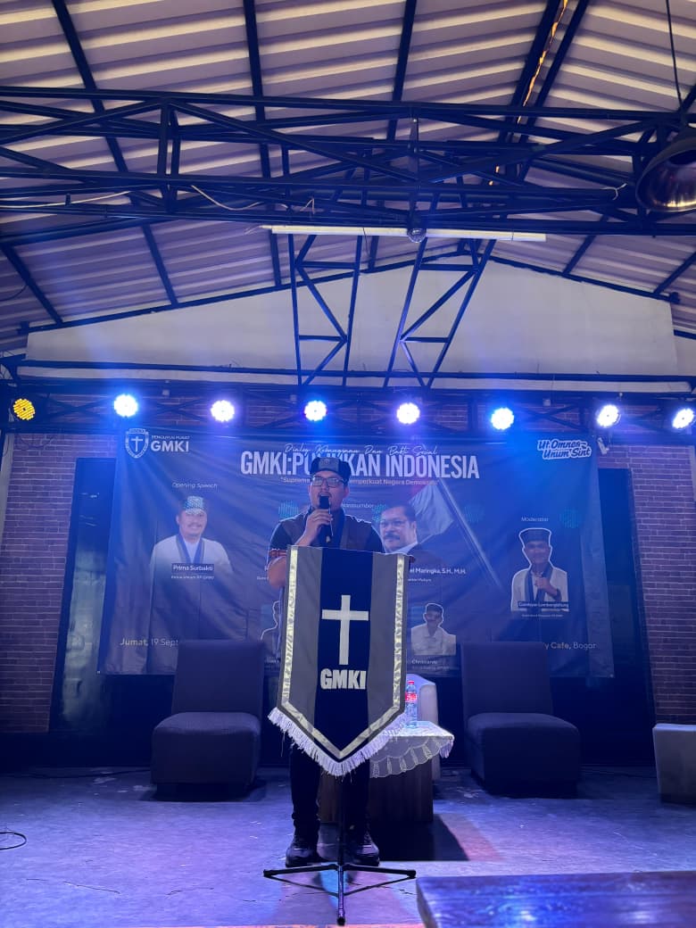 Opening speech disampaikan oleh Ketua Umum PP GMKI, Prima Surbakti, dengan narasumber Guru Besar Hukum Tata Negara UKI, Prof. Dr. John Pieris, dan Praktisi Hukum Dr. Jan Samuel Maringka, S.H., M.H. Acara dipandu oleh Combyan Lombongbitung, Ketua Bidang Aksi dan Pelayanan PP GMKI.
