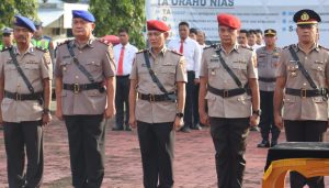 Dalam amanatnya, Kapolres Nias menyampaikan rasa syukur kepada Tuhan Yang Maha Esa atas kelancaran pada pelaksanaan upacara sertijab.